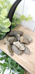 Activates the energy and holds the space for abundance and wealth to come into your space. Pyrite is a powerful protection stone which shields and protects against all forms of negative vibrations and/or energy, working on the physical, etheric, and emotional levels. It stimulates the intellect and enhances memory, helping to recall relevant information when needed. 1.25" Stone size vary.